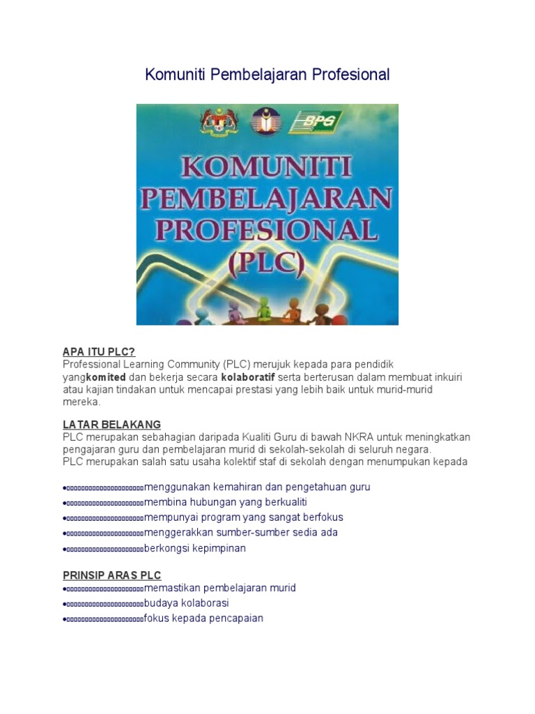 Memastikan pelaksanaan penglibatan dan keberkesanan. Check more flip ebooks. PLC ialah singkatan kepada program professional learning communities.